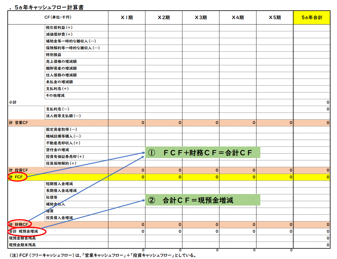 合計CFは、必ず1年間の現預金増減と一致します。