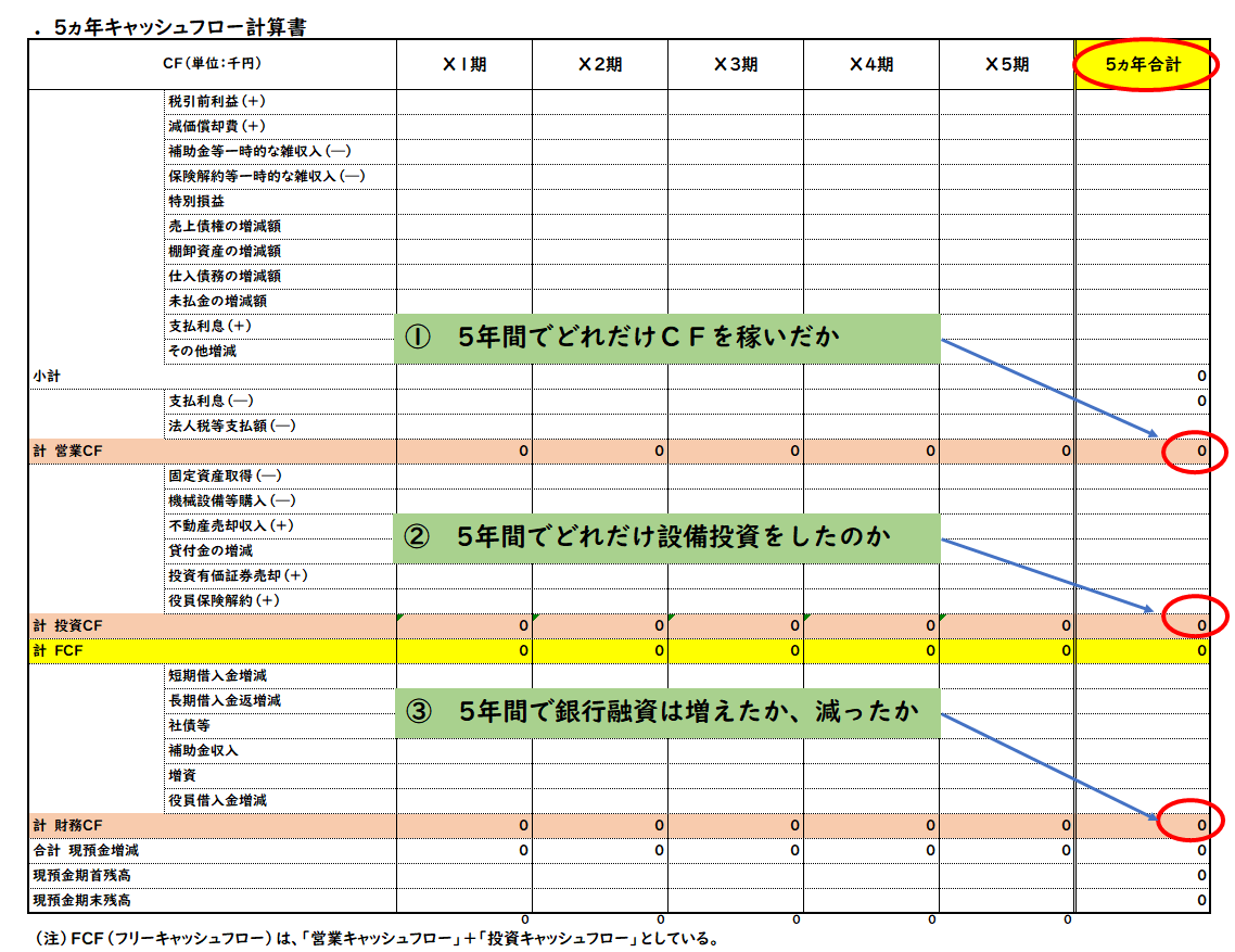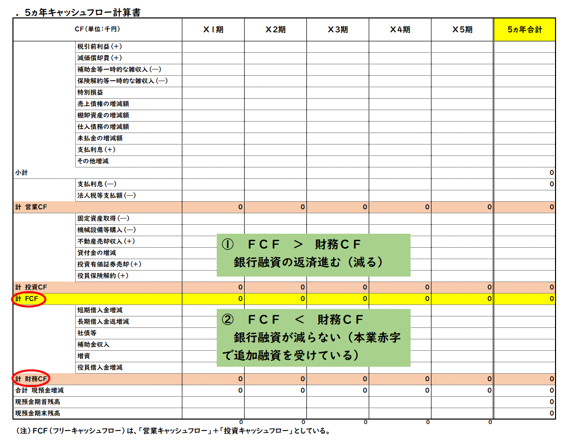 営業CF+投資CF=FCF FCF→銀行融資の返済財源