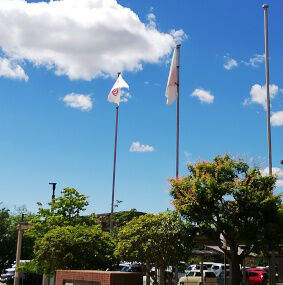 今日は駐車場の柵を挟んで